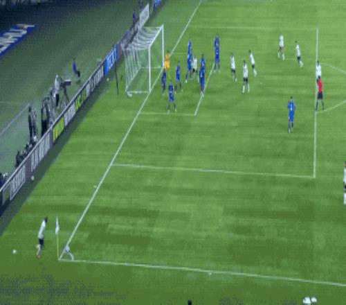 第39分钟,神户胜利船开出战术角球,队长山川哲史背对球门,将球顶进。