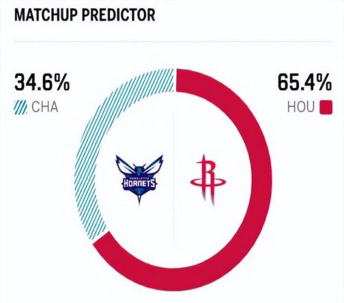 赛前,美媒ESPN对本场比赛进行了胜率预测,火箭队胜率高达65.4%,黄蜂胜率则仅有34.6% ,差距还挺明显。