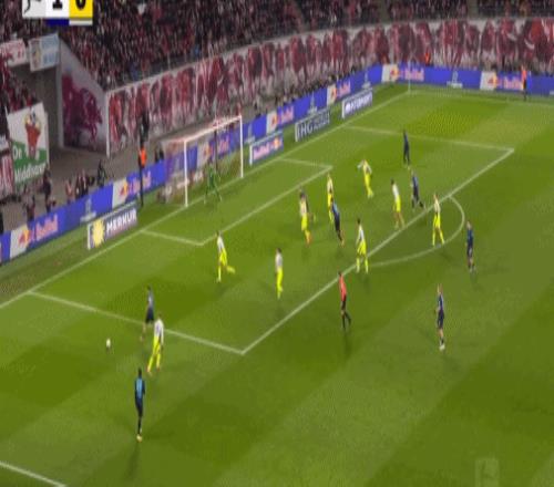 第20分钟,迪奥曼德晃动送助攻,鲍姆加特纳破门,莱比锡1-0多特