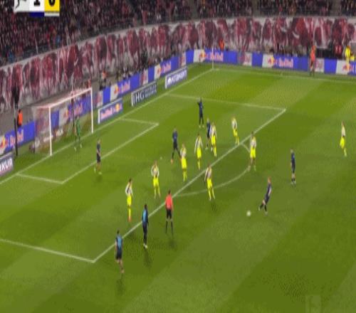 第39分钟,劳姆传中,鲍姆加特纳破门完成双响,莱比锡2-0多特