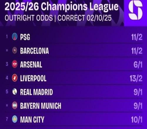 英超夺冠赔率更新:阿森纳反超利物浦,成为头号热门